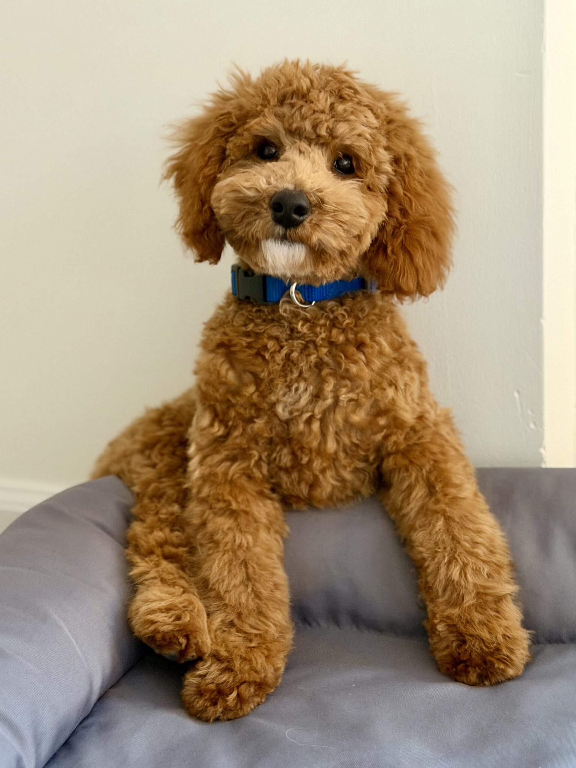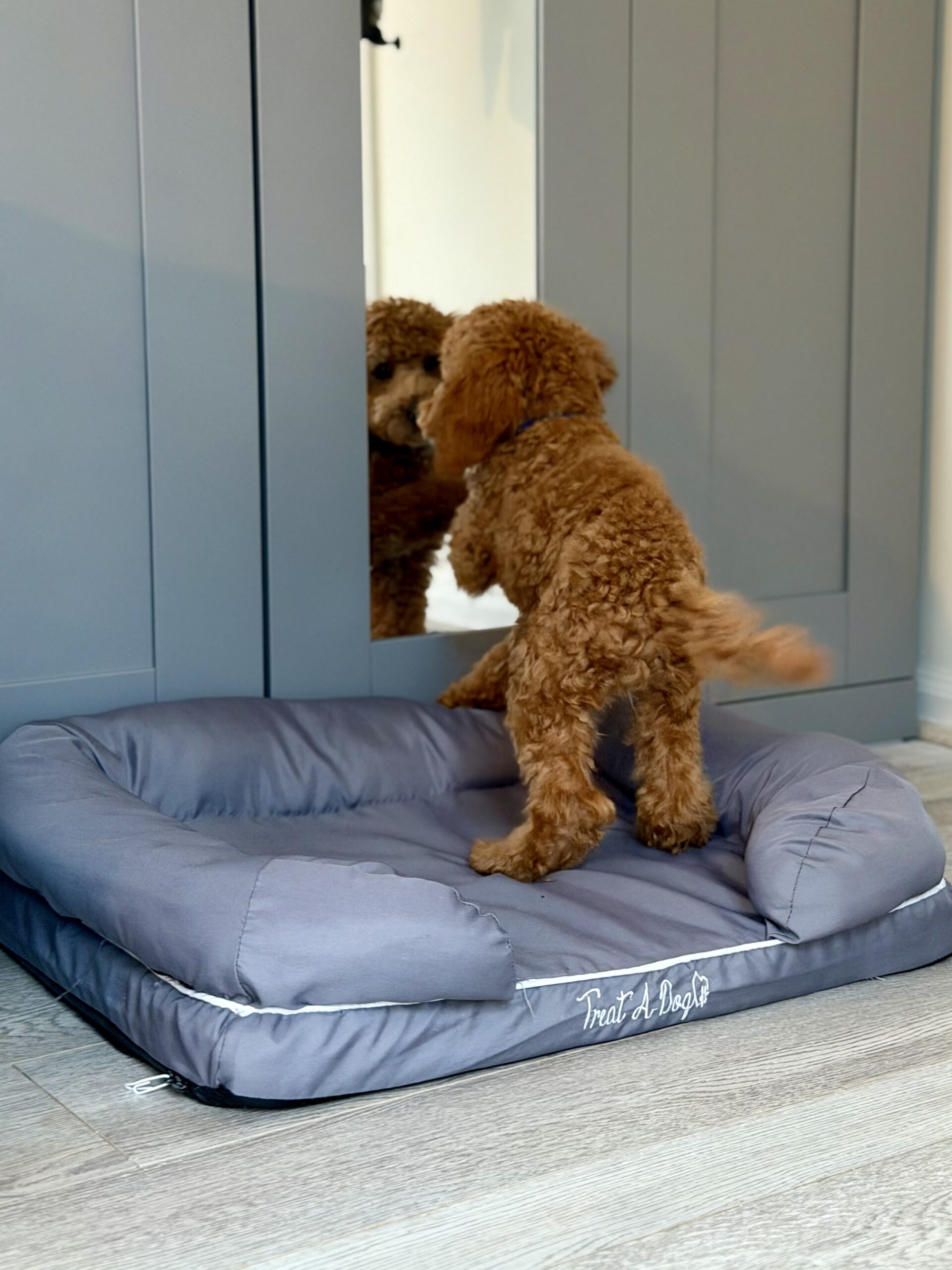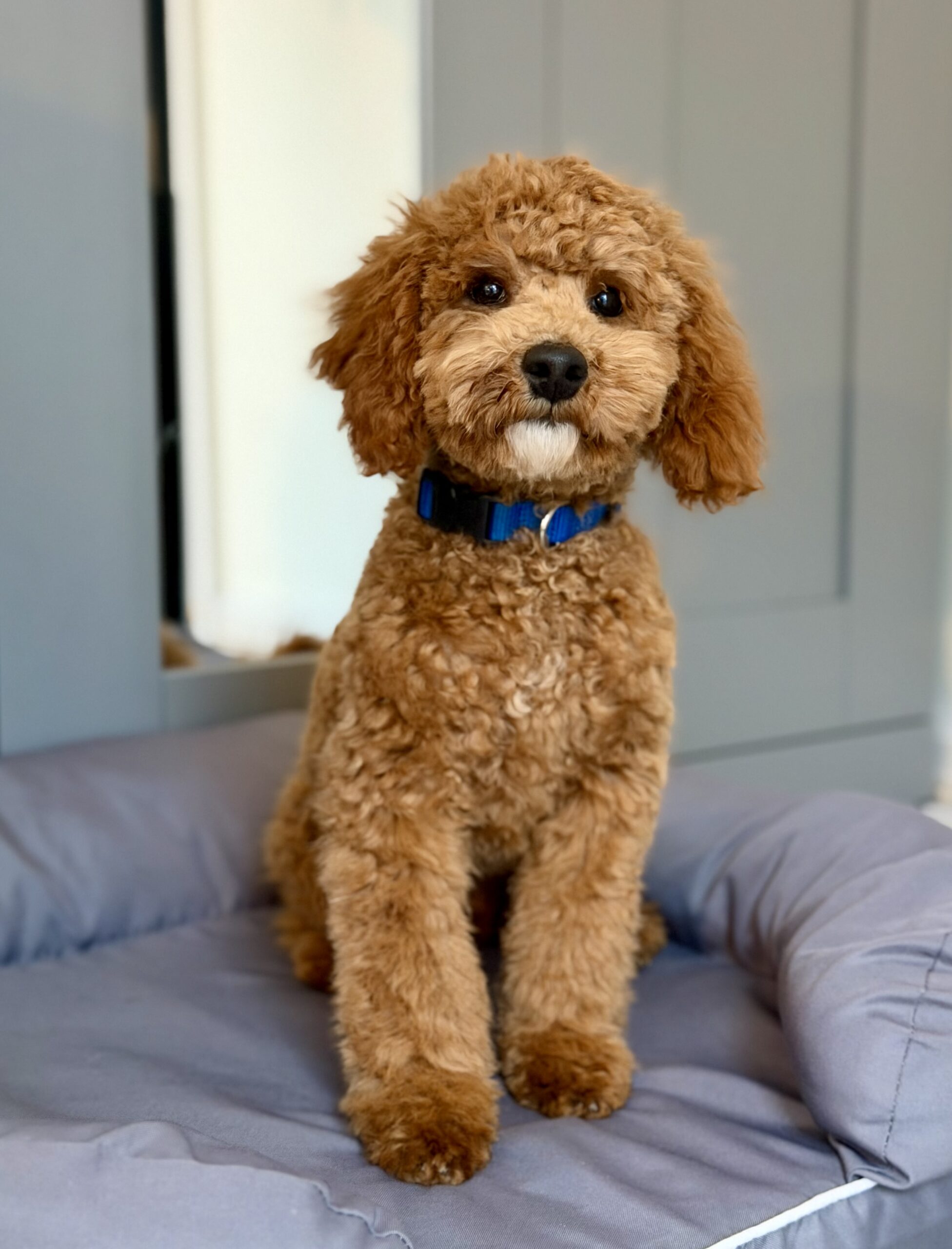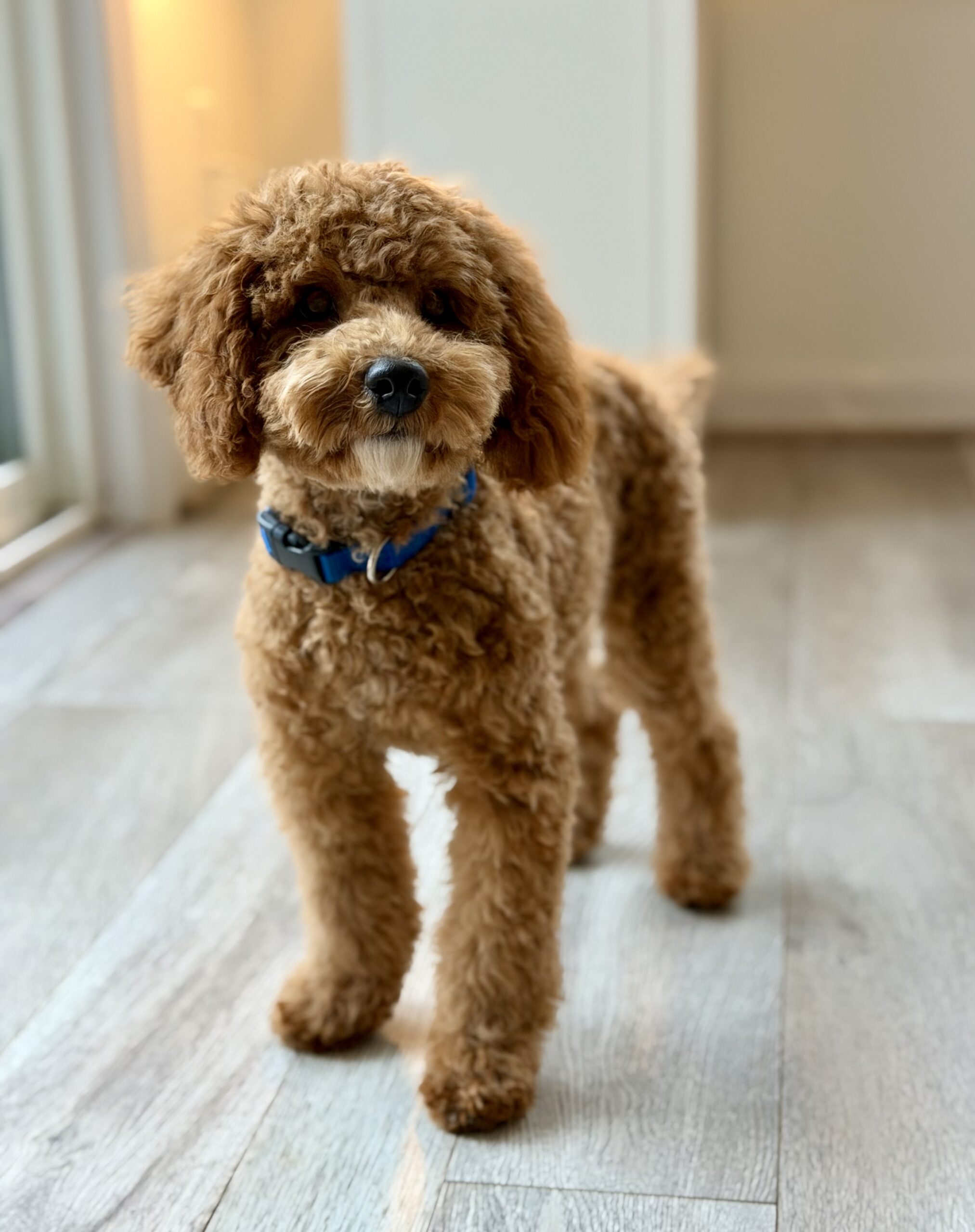 Meet Red. He is a gorgeous F1b Cockapoo born August 2025. Red has completed our companion dog training program and he is a fantastic pup! Red is outgoing, playful and affectionate. He is also really smart and wants to please. Red gets along well with other dogs, cats and kids and is all around great. And even if you don’t have any friends for him, don’t worry, he loves playing with his friend in the mirror ;). He has been on several outings with us and does great in public and for car rides. He has of course completed all vet work as well and would love to join your family! His fee is $1800.